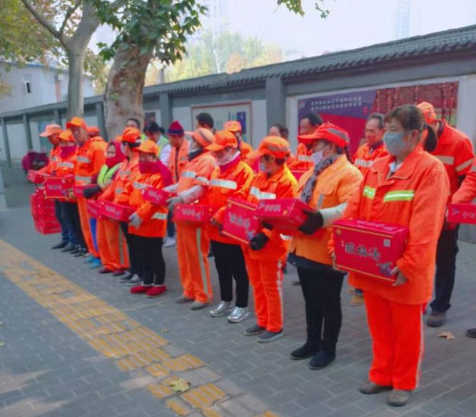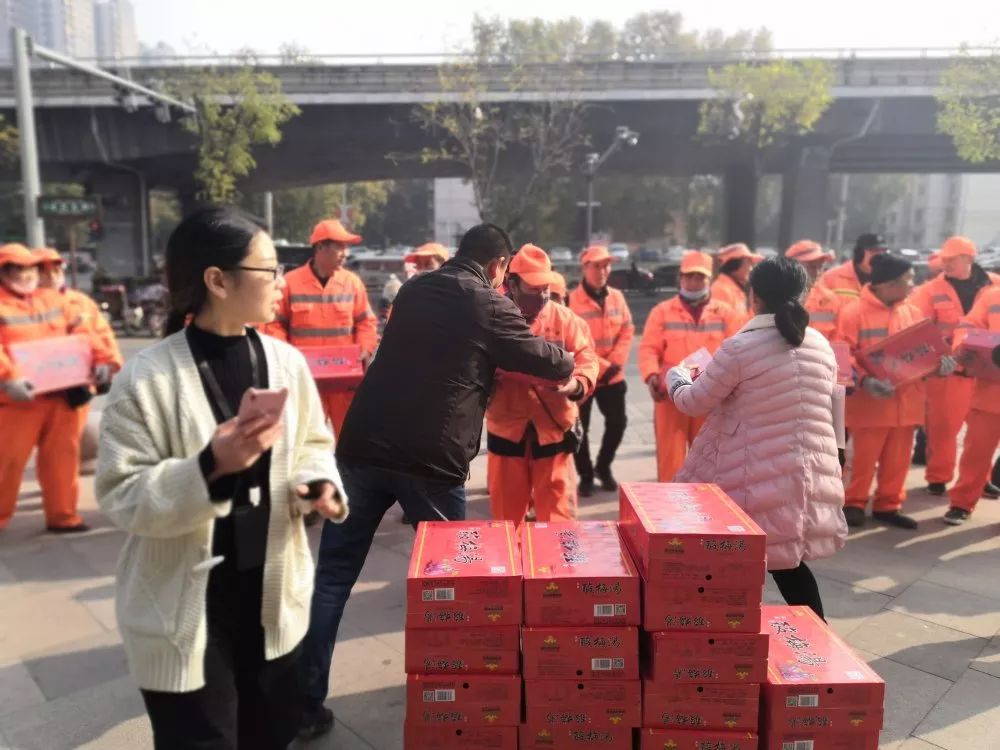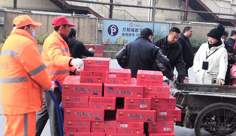 冬天到了,無數(shù)的環(huán)衛(wèi)工人依舊為了城市的干凈整潔奮戰(zhàn)在第一線,寒冬將至,為了感謝環(huán)衛(wèi)工人的無私付出,培養(yǎng)我們的感恩之心,能讓環(huán)衛(wèi)工人感受到溫暖,11月21日,“感恩有你,情暖環(huán)衛(wèi)”送溫暖公益活動來到了胡家廟街辦,我們將四百多箱酸梅湯送到了環(huán)衛(wèi)工人手里。