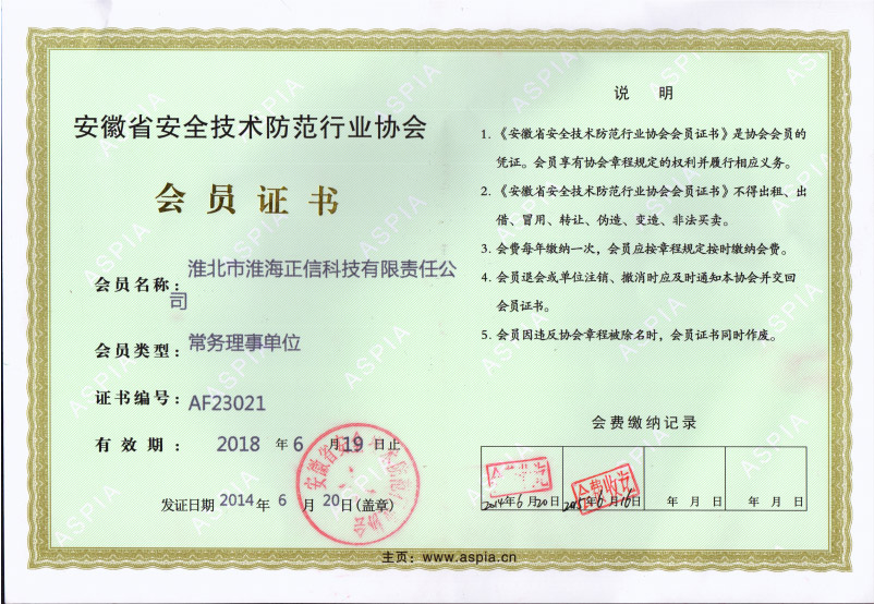 安全協(xié)會(huì)會(huì)員證書
