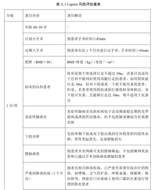 Caprini 風(fēng)險評估見表A.1.