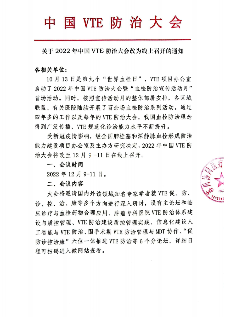 會議通知丨2022中國VTE防治大會12月線上召開!強化質(zhì)控,深化研究,推動醫(yī)院高質(zhì)量發(fā)展